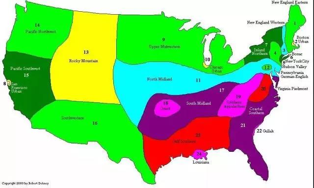 除了占全国70%以上的美国中西部英语,美国南部口音也是独具特色的美国口音的一种。美国南方口音的特点就是拖长音,什么元音都拖的老长,而且词与词当中没有停顿,通通连读。