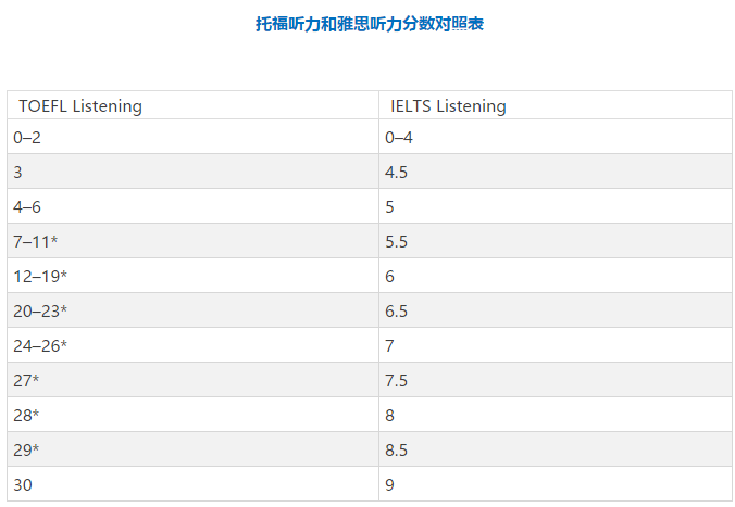 托福雅思分数对照表 TOEFL ScoreIIELTS Band