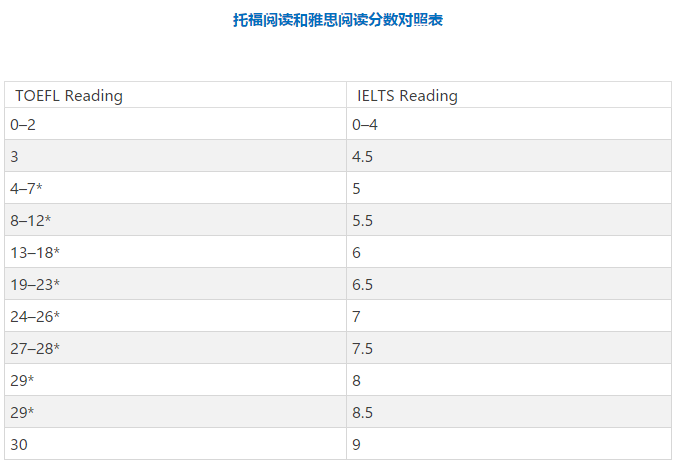 托福阅读和雅思阅读分数对照表 TOEFL ReadingIELTS Reading