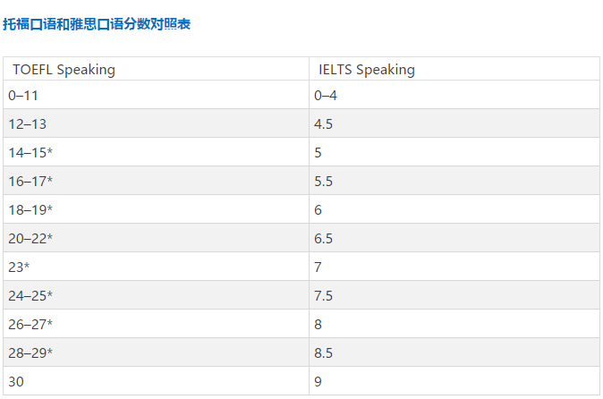 托福口语和雅思口语分数对照表 TOEFL SpeakingIELTS Speaking
