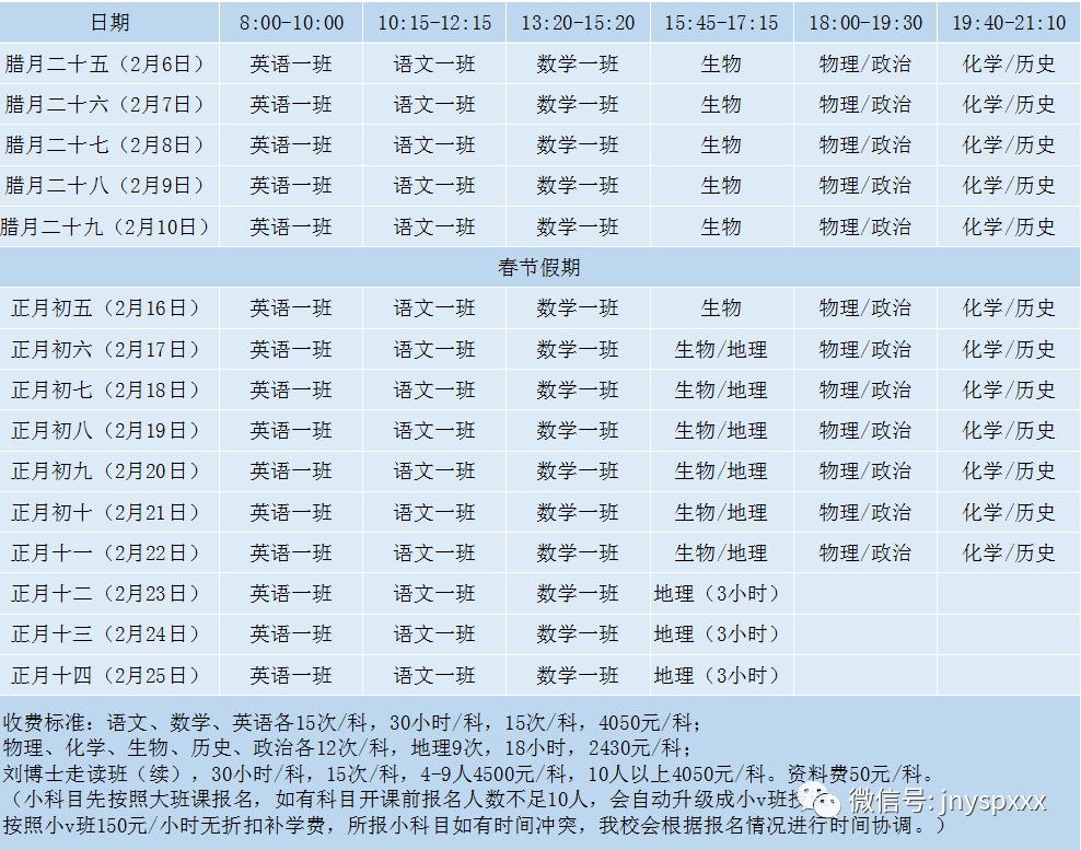 ![]() 2021寒假班开始报名啦 ![]() 一、先到先得 按报名顺序前100名,免资料费!(最多免六科) 二、红红火火 满墙红包等您选,喜欢哪个选哪个! 三、有惠同享 老生优惠券500元,新生分享券300元! 四、其乐融融 •11月28日-12月27日 老学员7.5折,新学员8折; •12月28日-2月5日 老学员8.5折,新学员9.2折; 开课后无优惠! 五、旗开得胜 人人都爱“圆顶奖”! 活动时间:11月28日-12月27日 2021寒假班课 济南雅思培训学校 为你的高中学习生活助力加油!!!