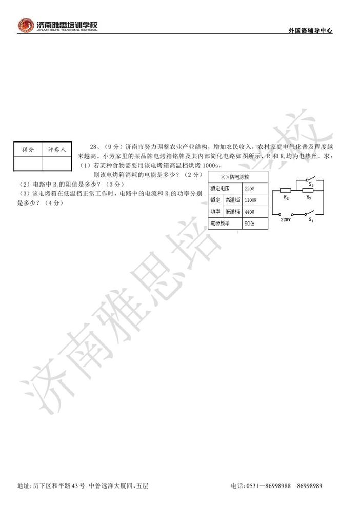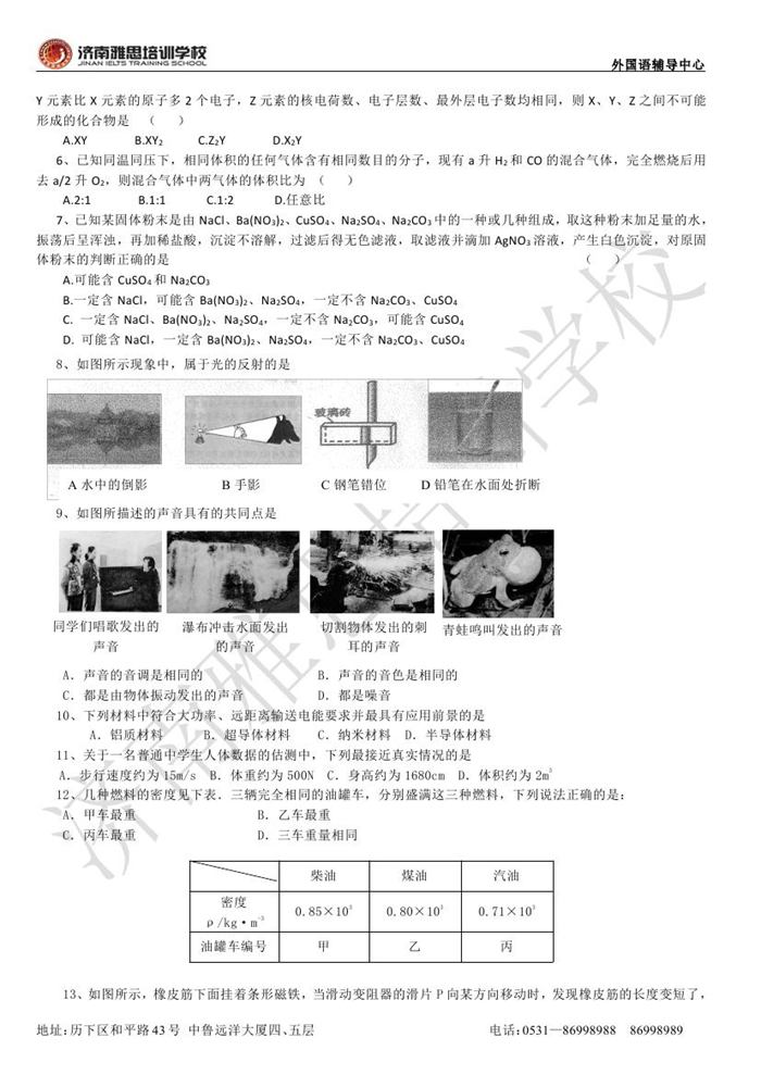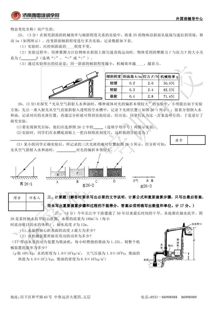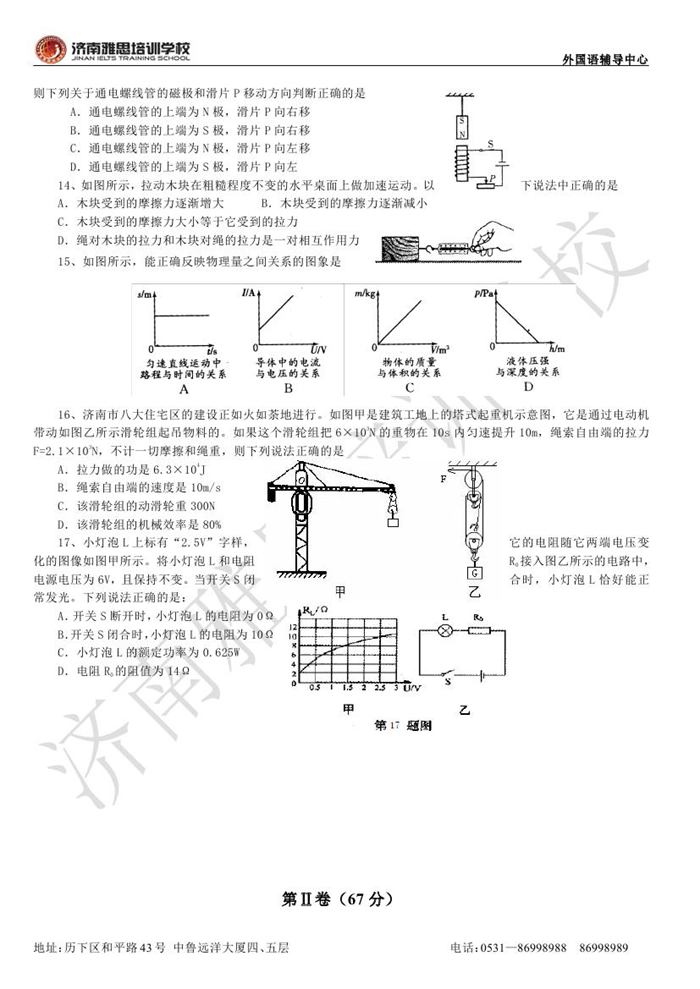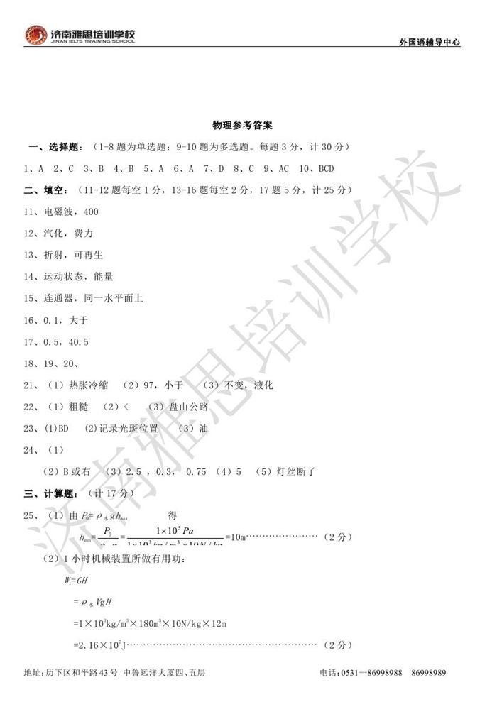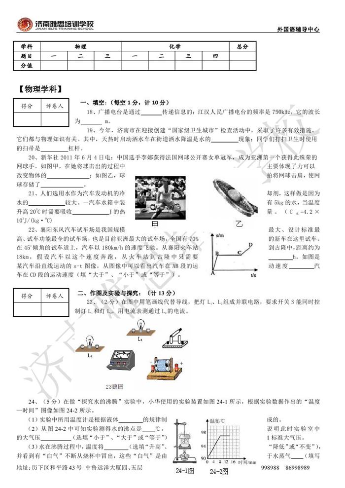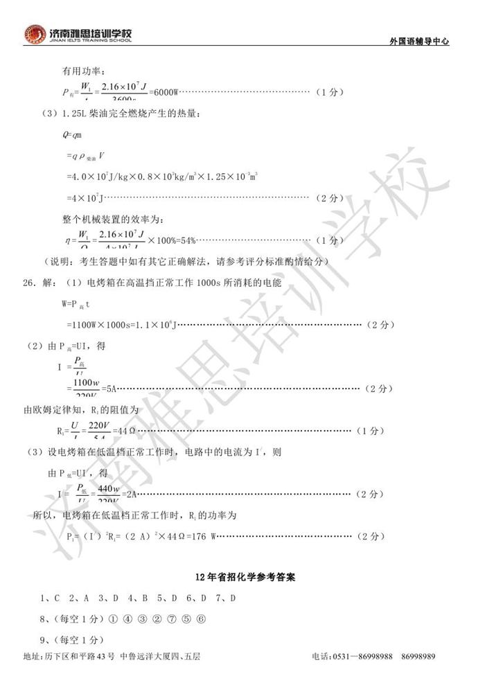 2012年济南外国语学校省招保送招生考试物理试题
