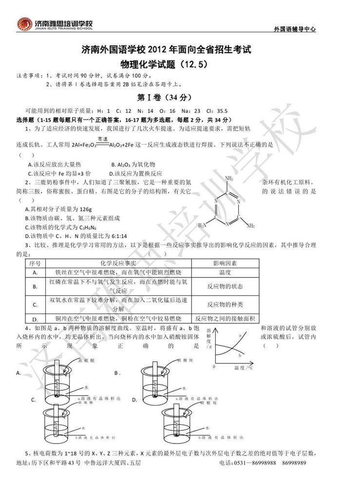 下一篇:2012年济南外国语学校省招保送招生考试英语试题