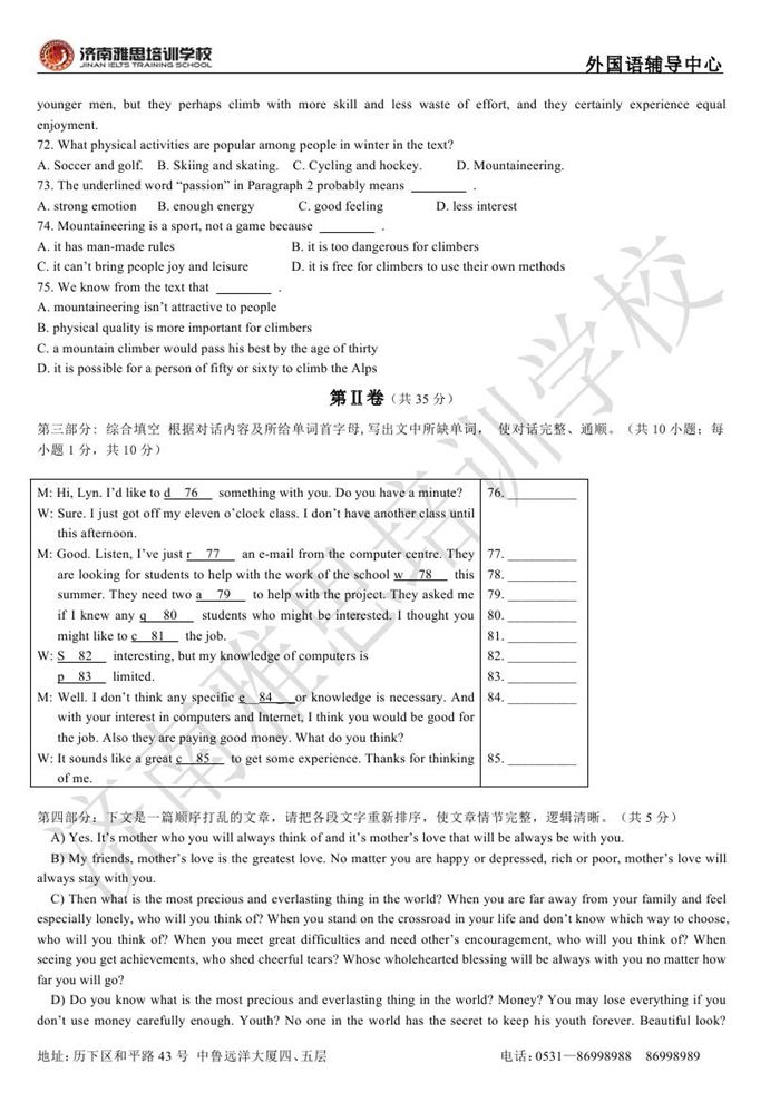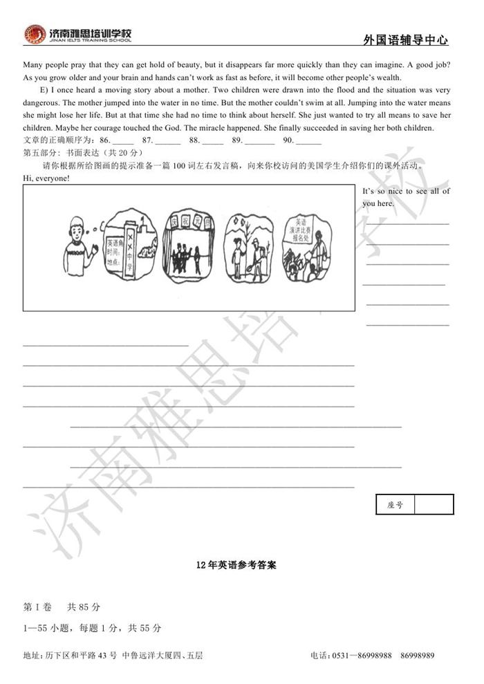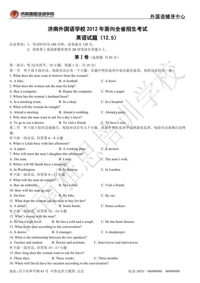 2012年济南外国语学校省招保送招生考试英语试题