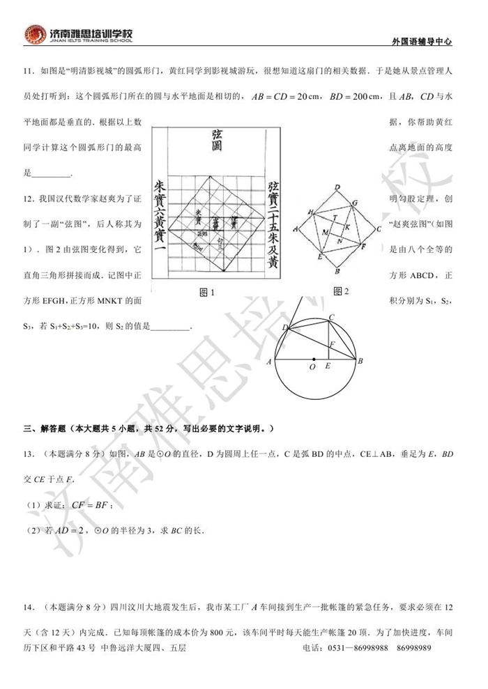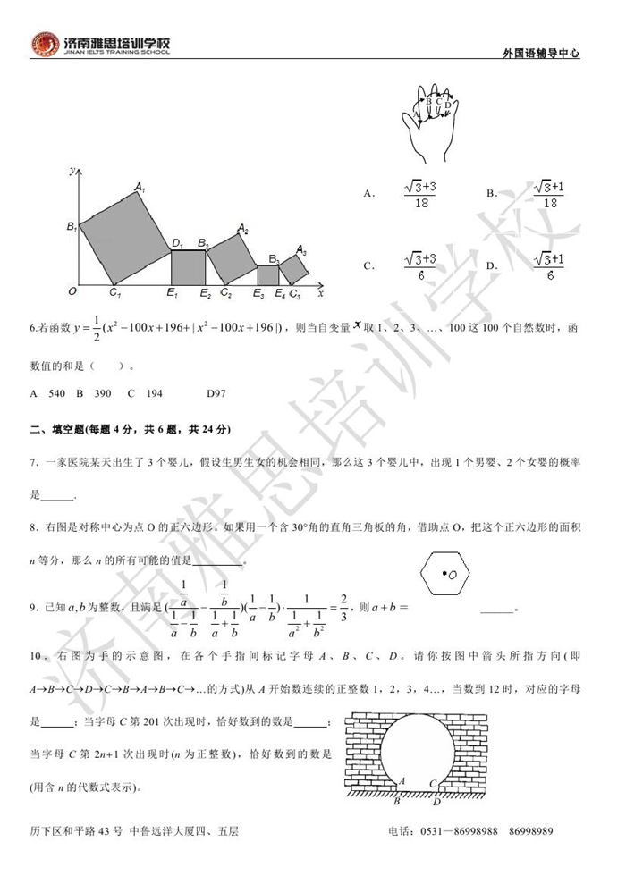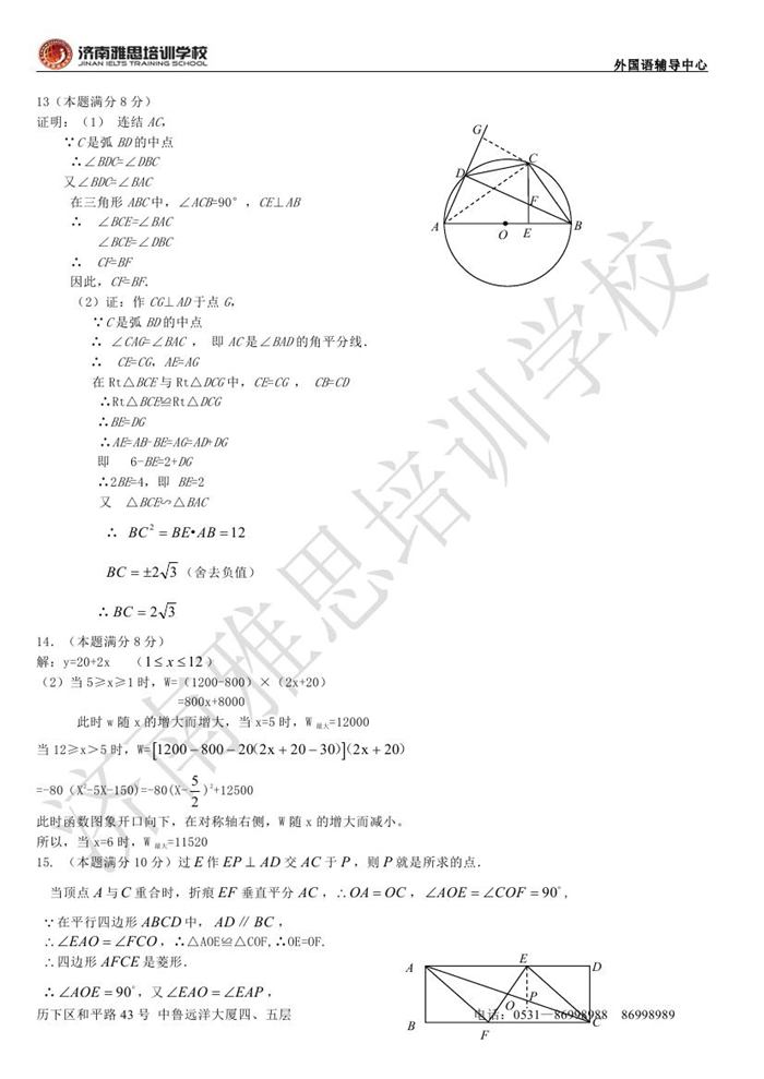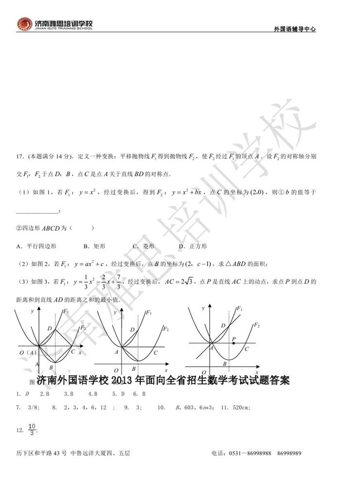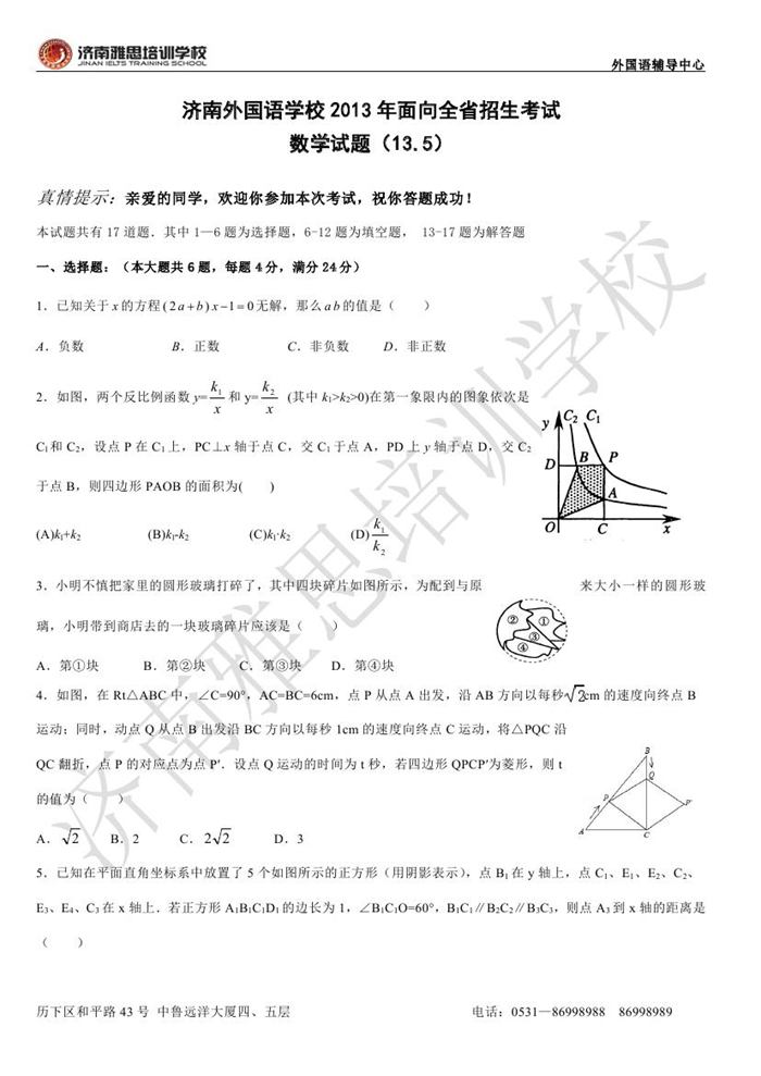 2013年济南外国语学校省招保送招生考试数学试题