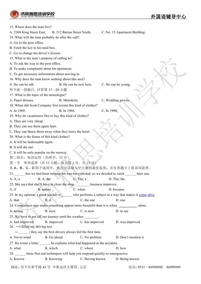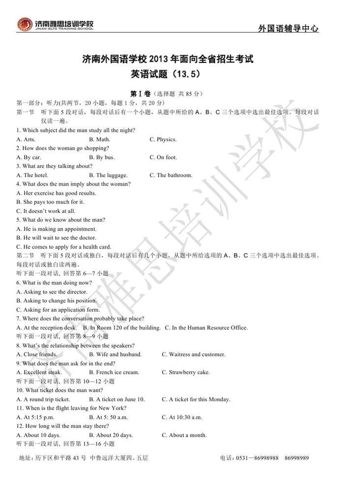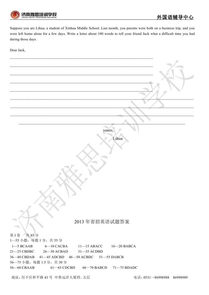 2013年济南外国语学校省招保送招生考试英语试题