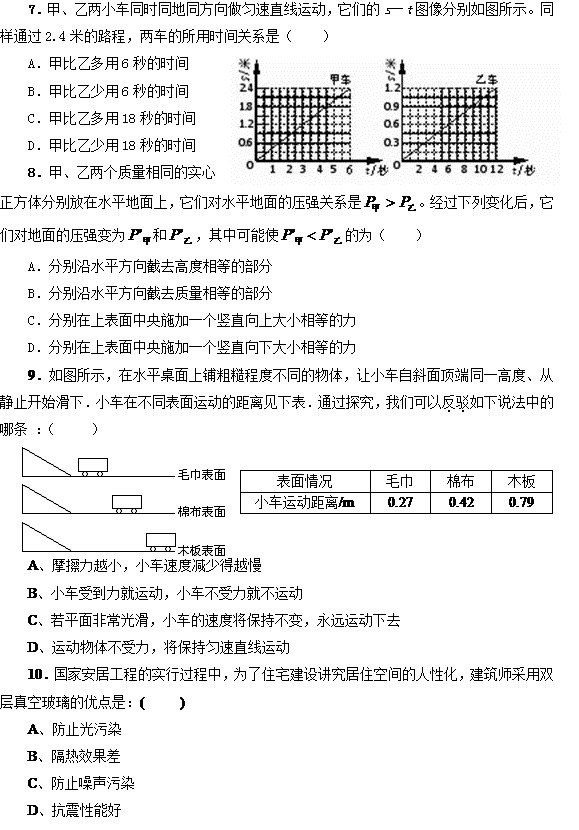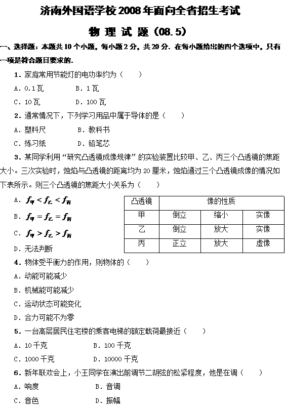 物 理 试 题参考答案(08.5) 一、选择题:本题共10个小题,每小题2分,共20分.在每小题给出的四个选项中,只有一项是符合题目要求的.