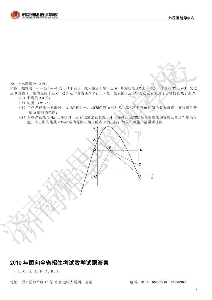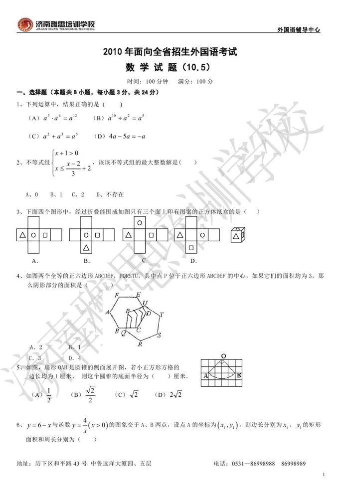 2010年外国语保送招生考试数学试题