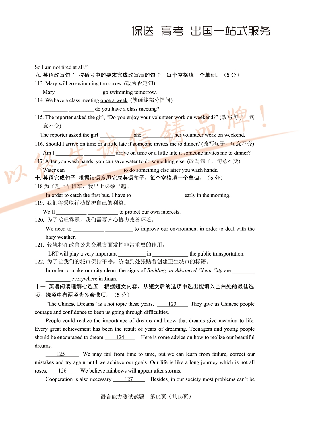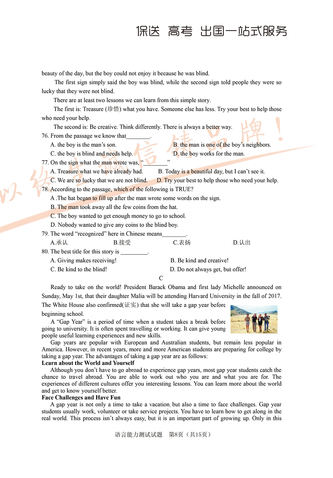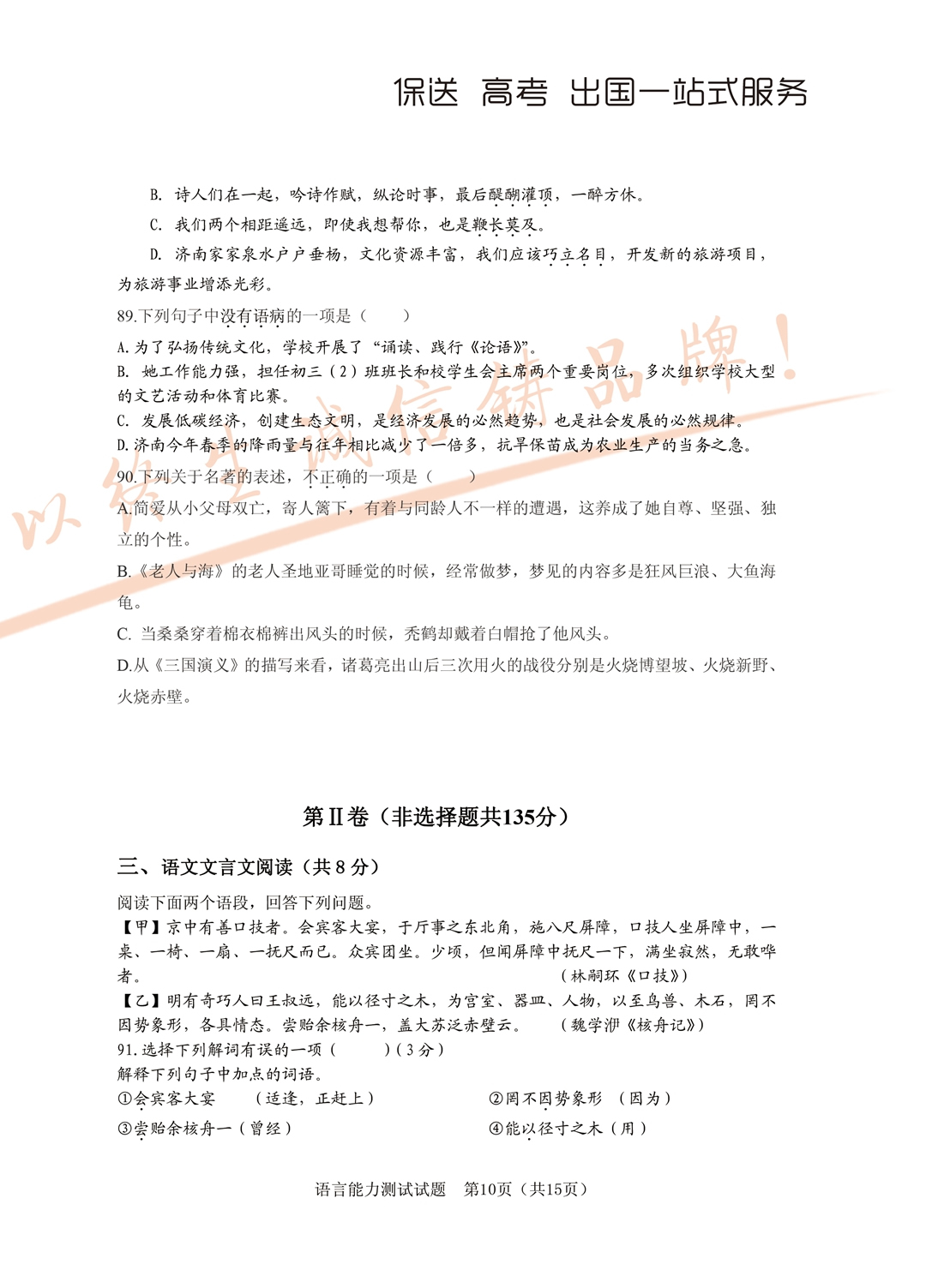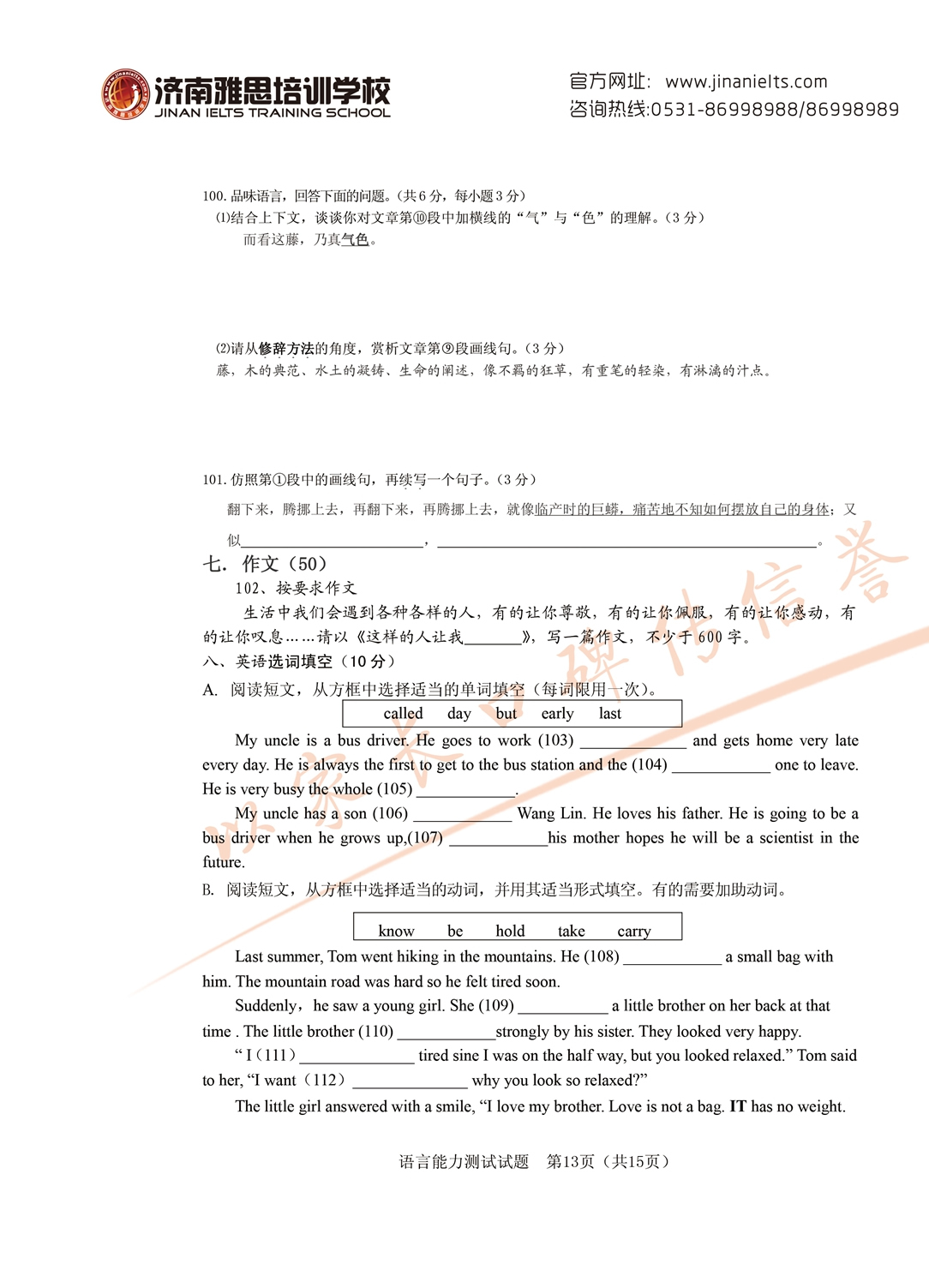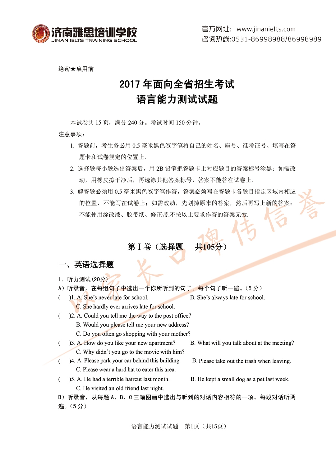 2017年面向全省招生考试语言能力测试试题