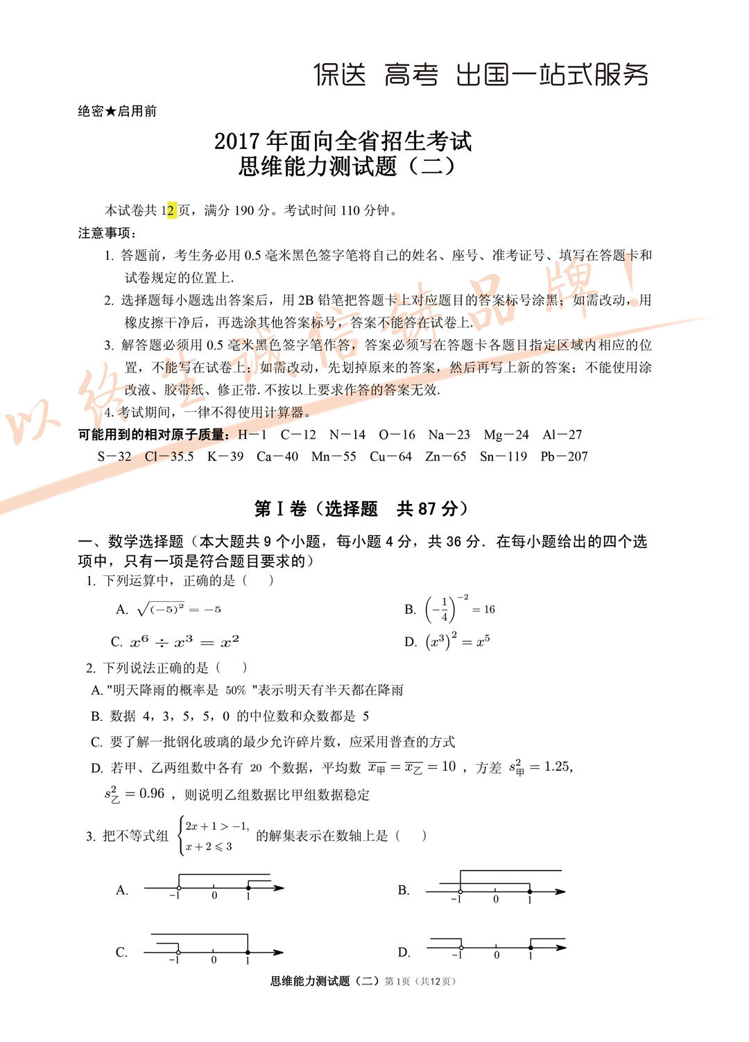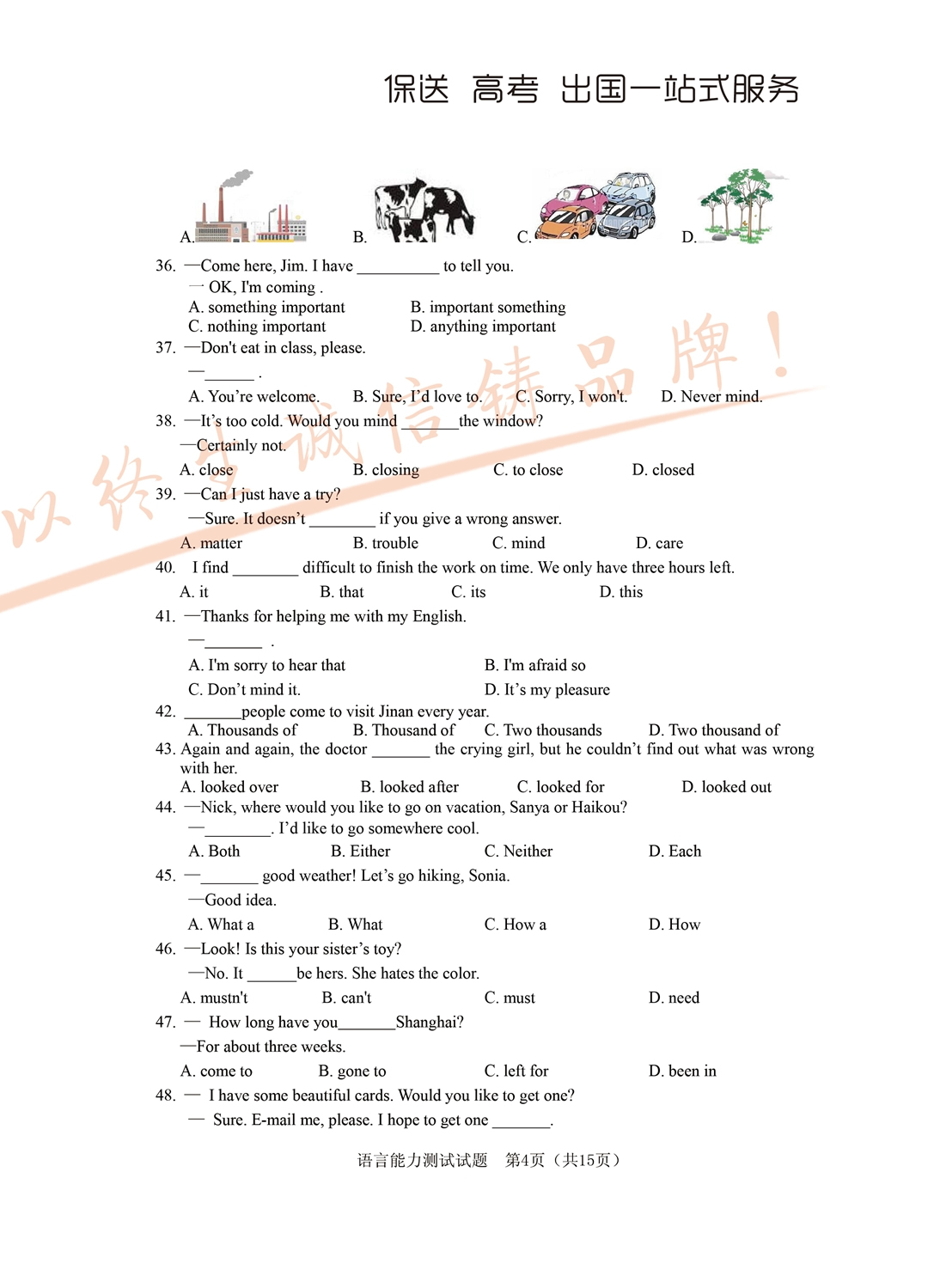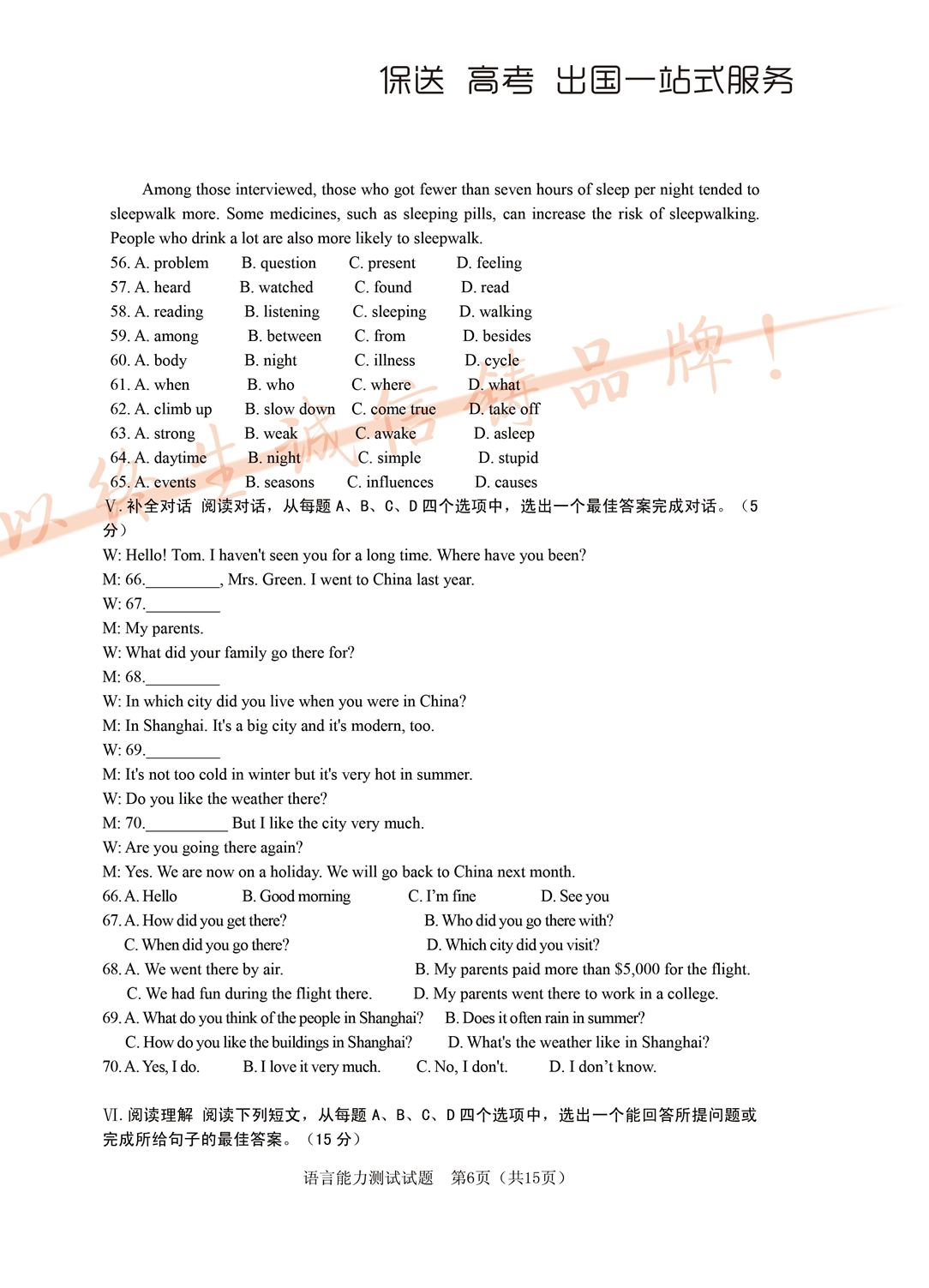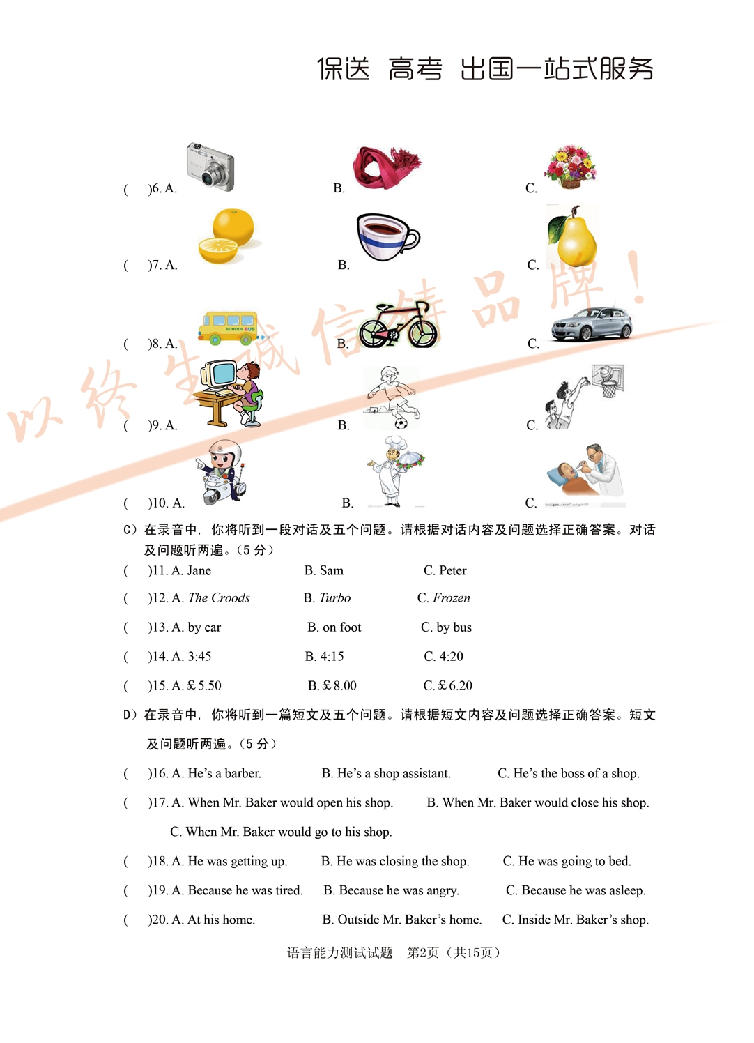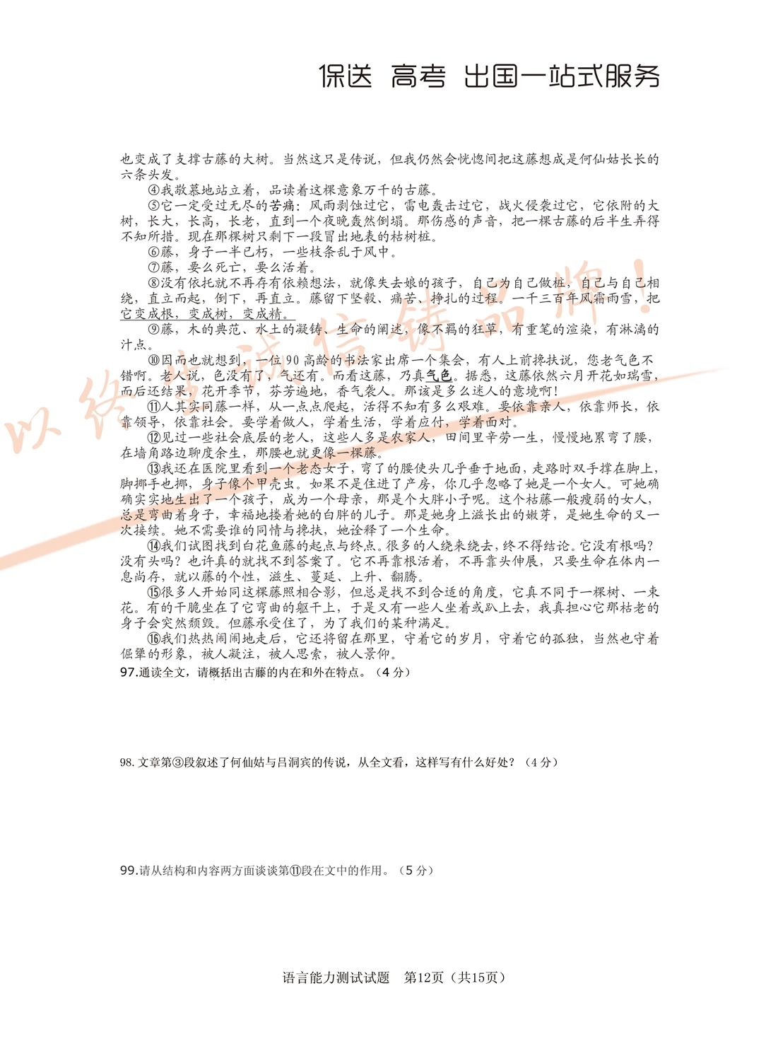 2017年面向全省招生考试语言能力测试试题