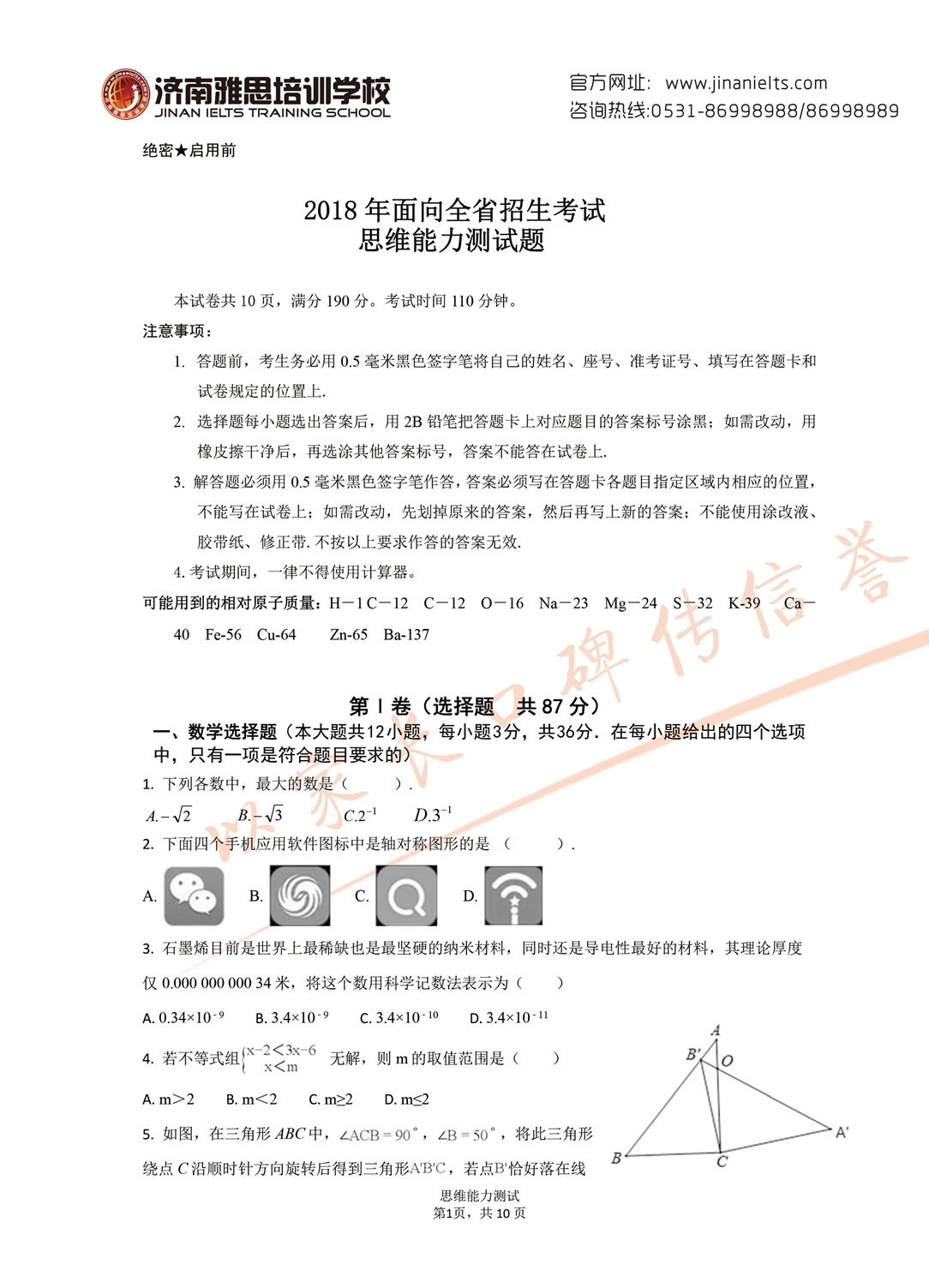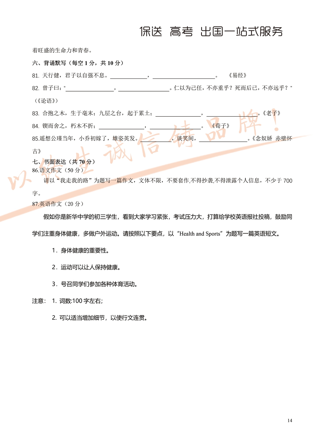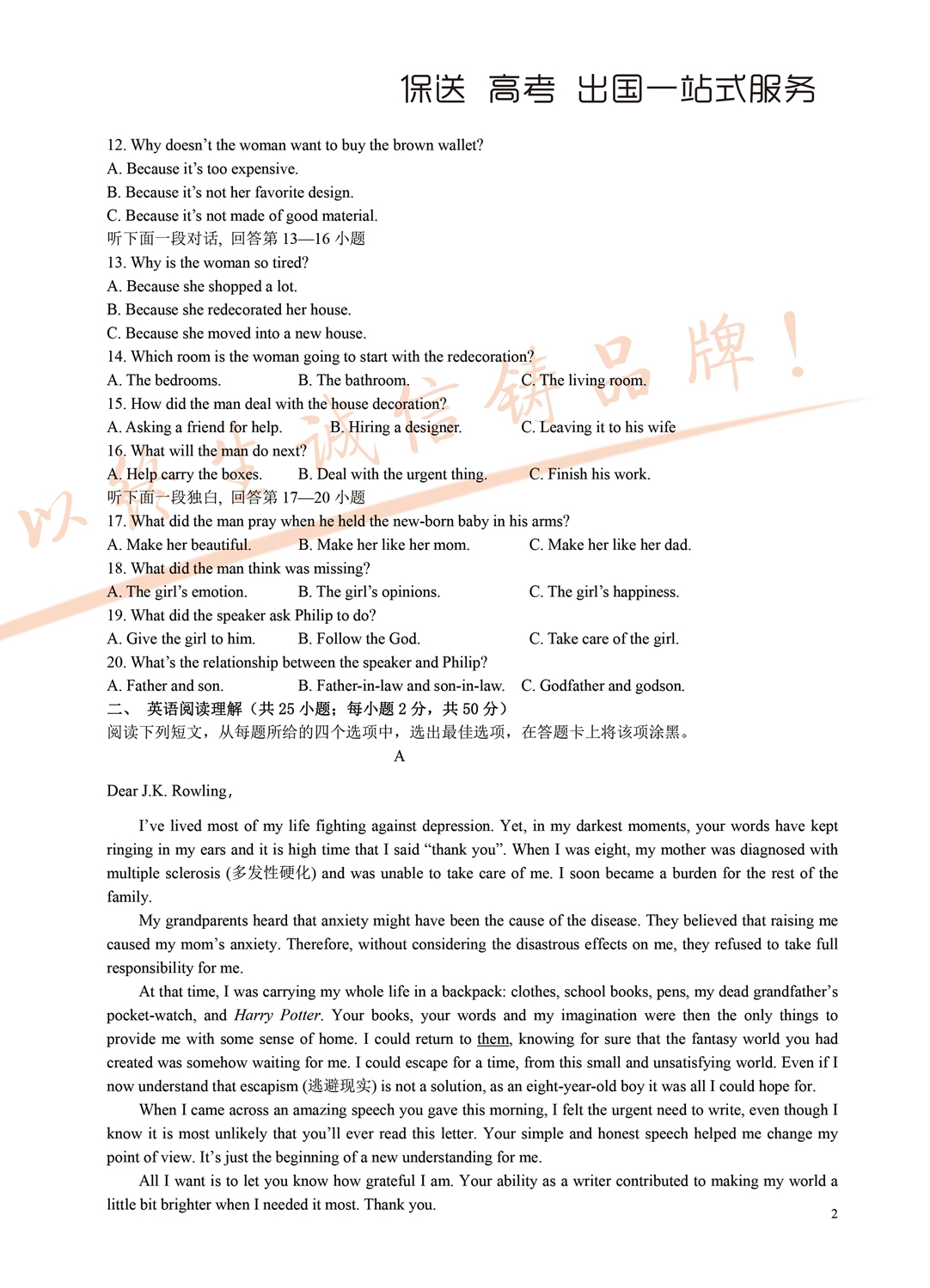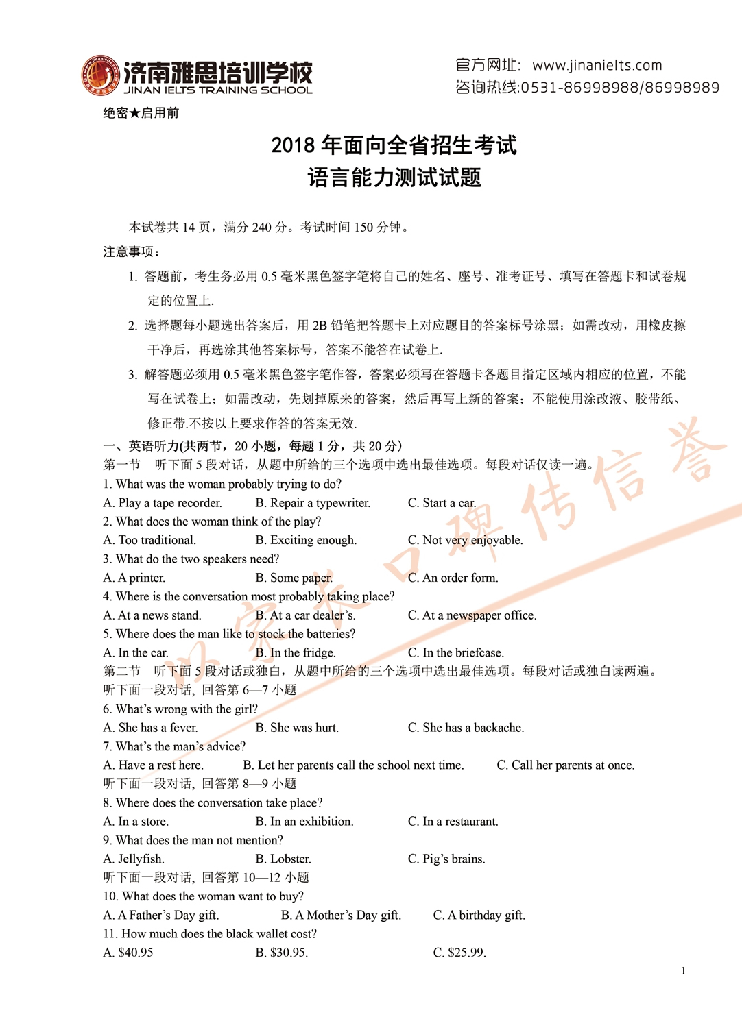 2018年面向全省招生考试语言能力测试试题