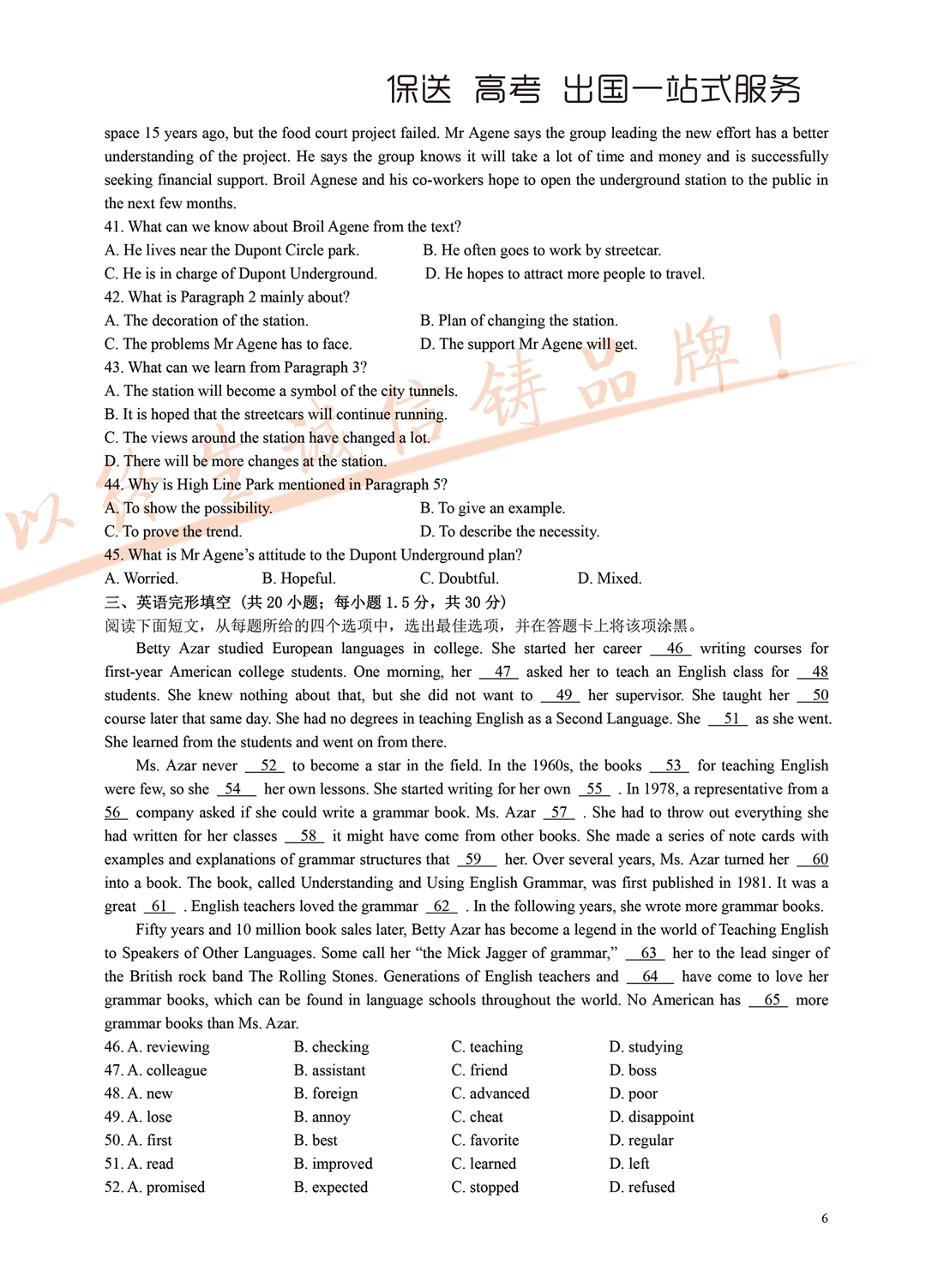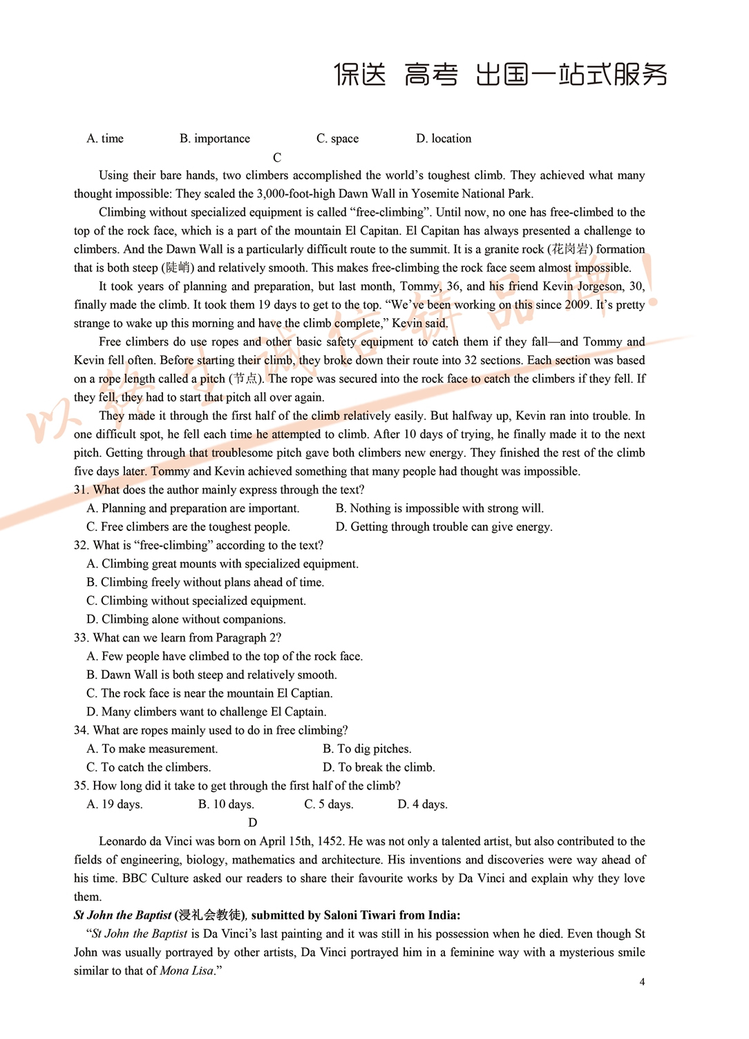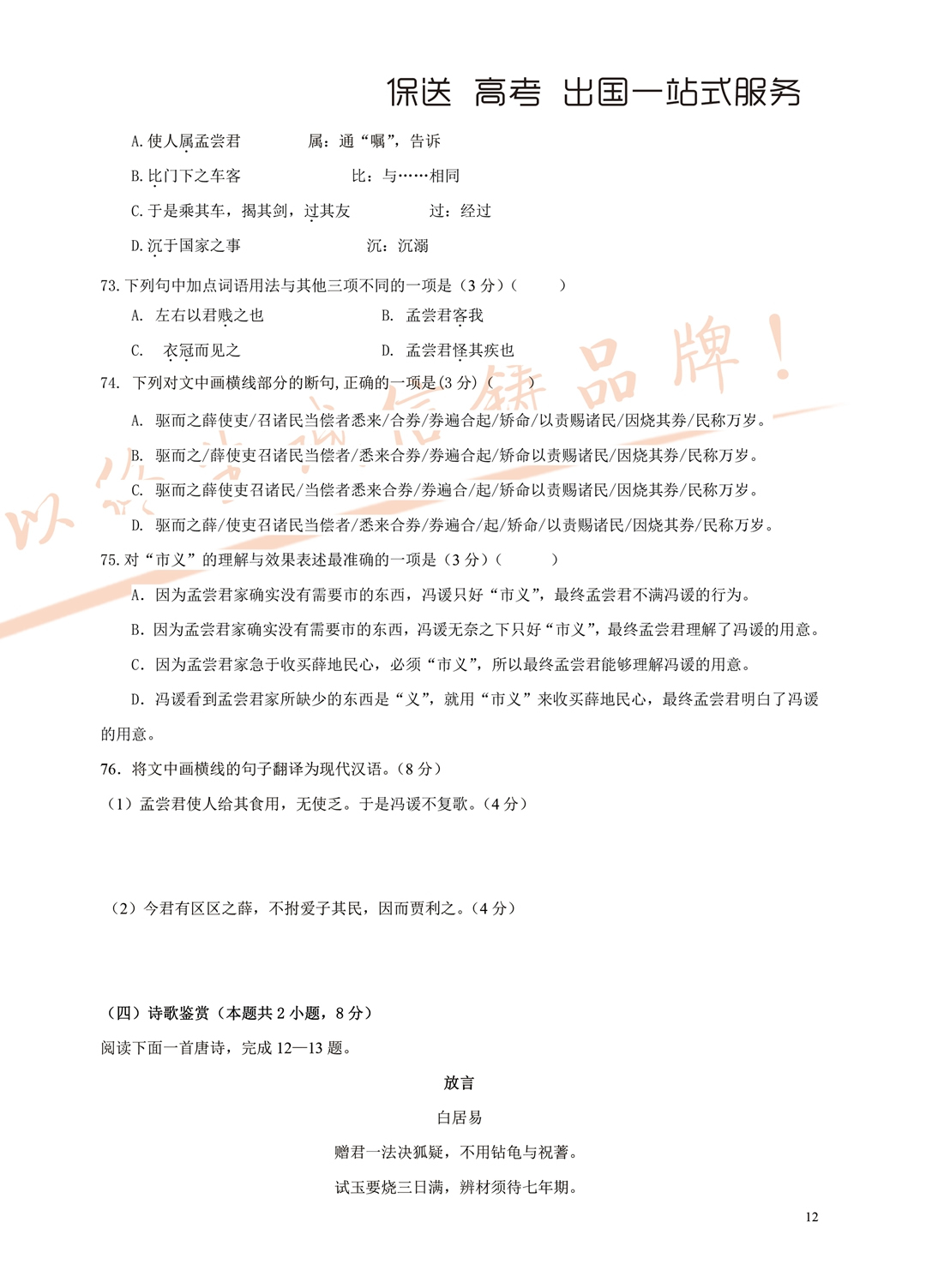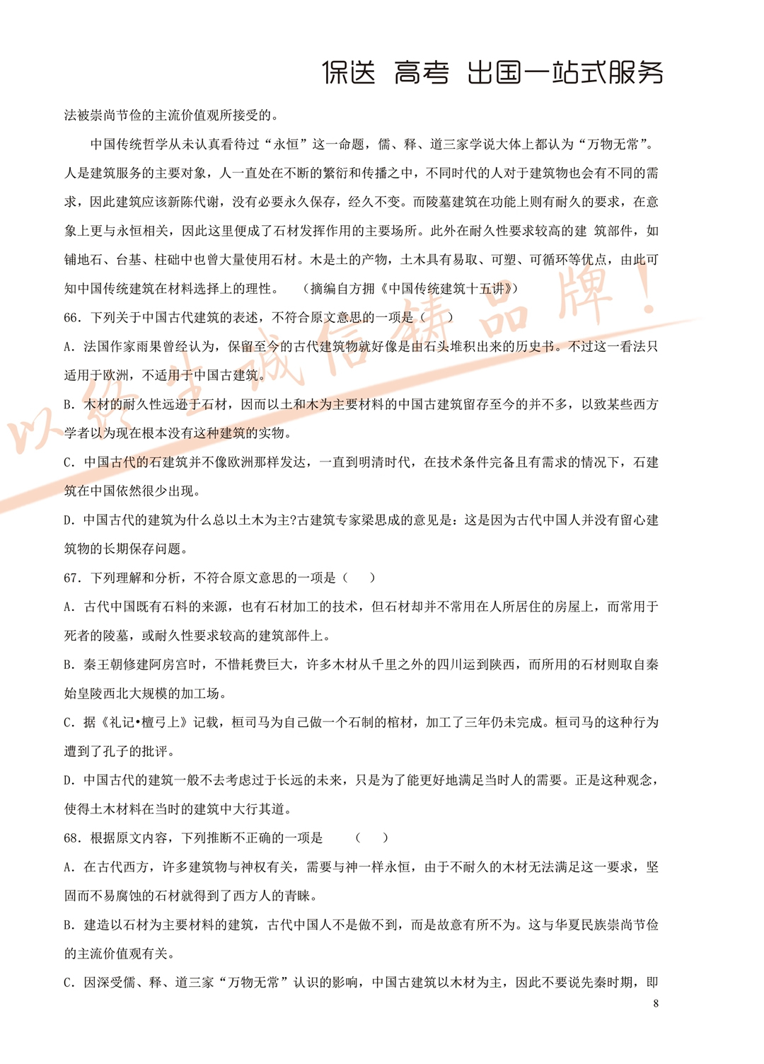 2018年面向全省招生考试语言能力测试试题